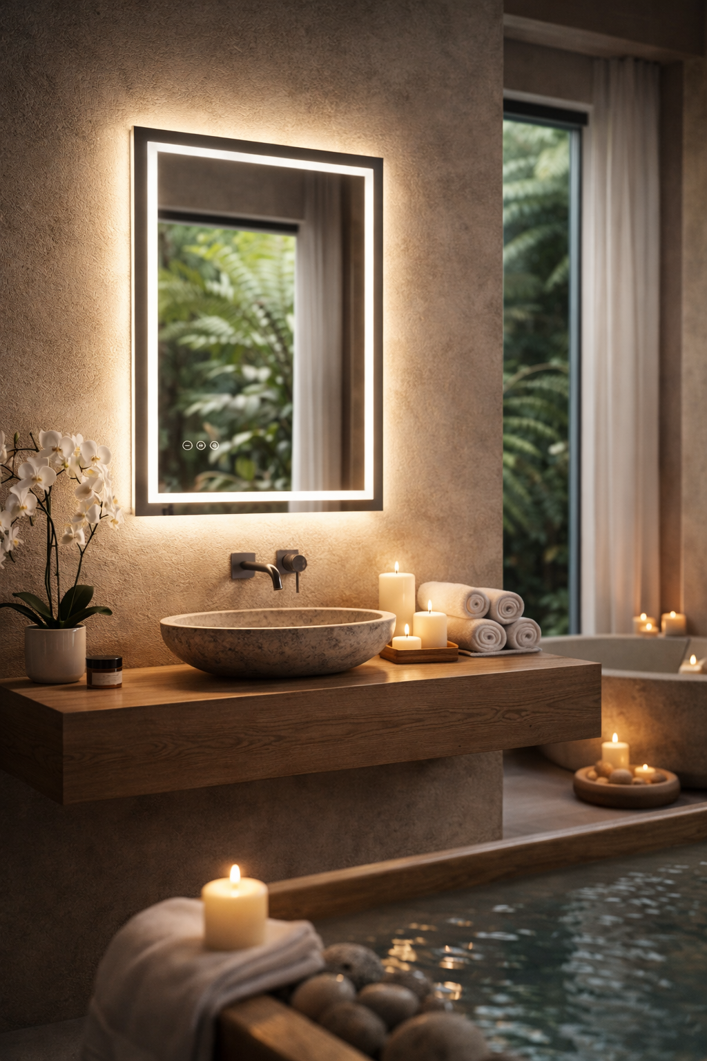 Transform your bathroom into a sanctuary of modern Luxury Bathroom Design with Anti-Fog Technology Designed as a statement wall mirror, it combines clean lines and minimalist elegance with advanced anti-fog technology to...