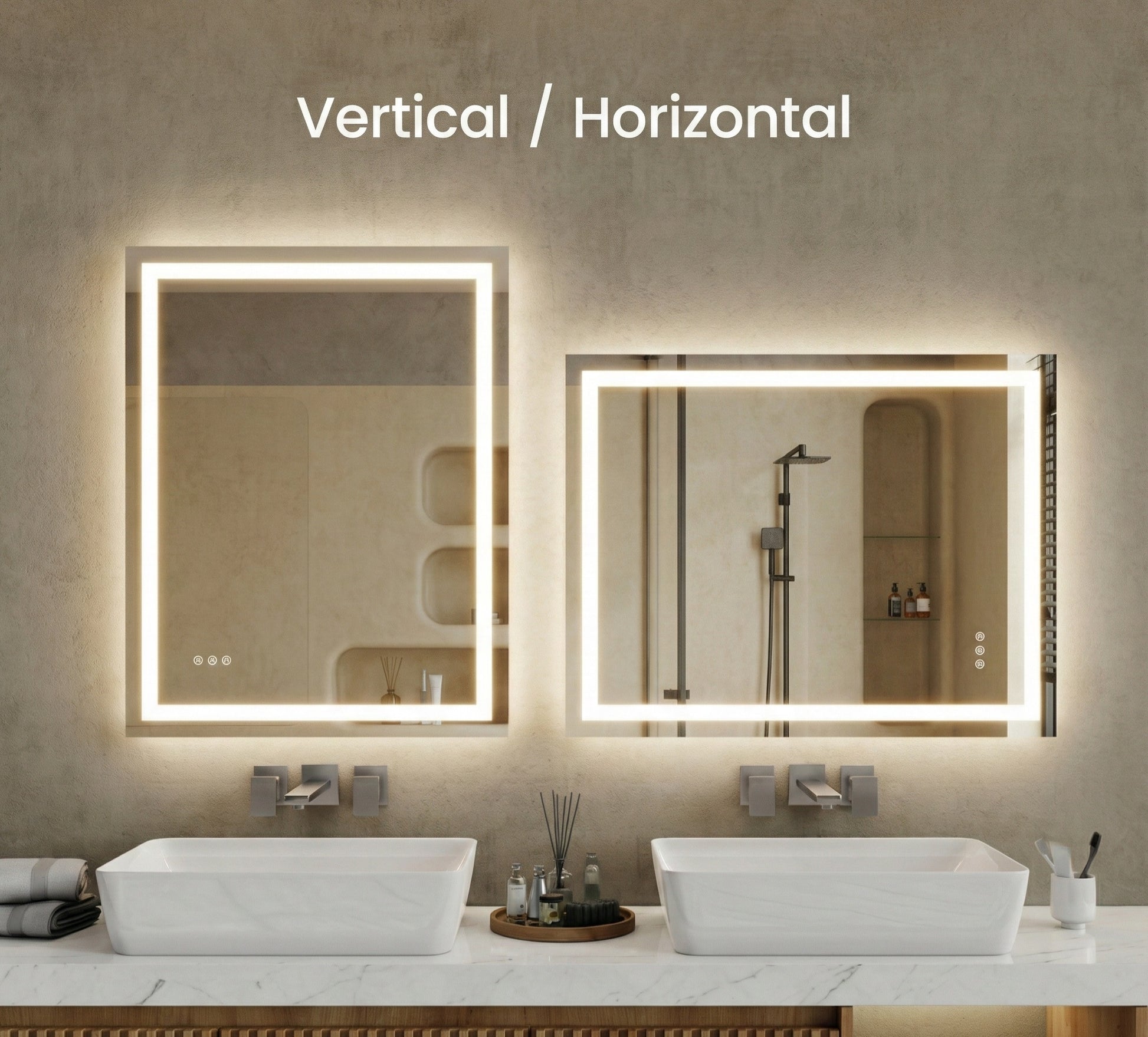 Our largest wall mirror, featuring built-in Anti-Fog technology to stay crystal clear even after hot showers. Designed for daily use in high-humidity spaces while maintaining a polished, luxury look.